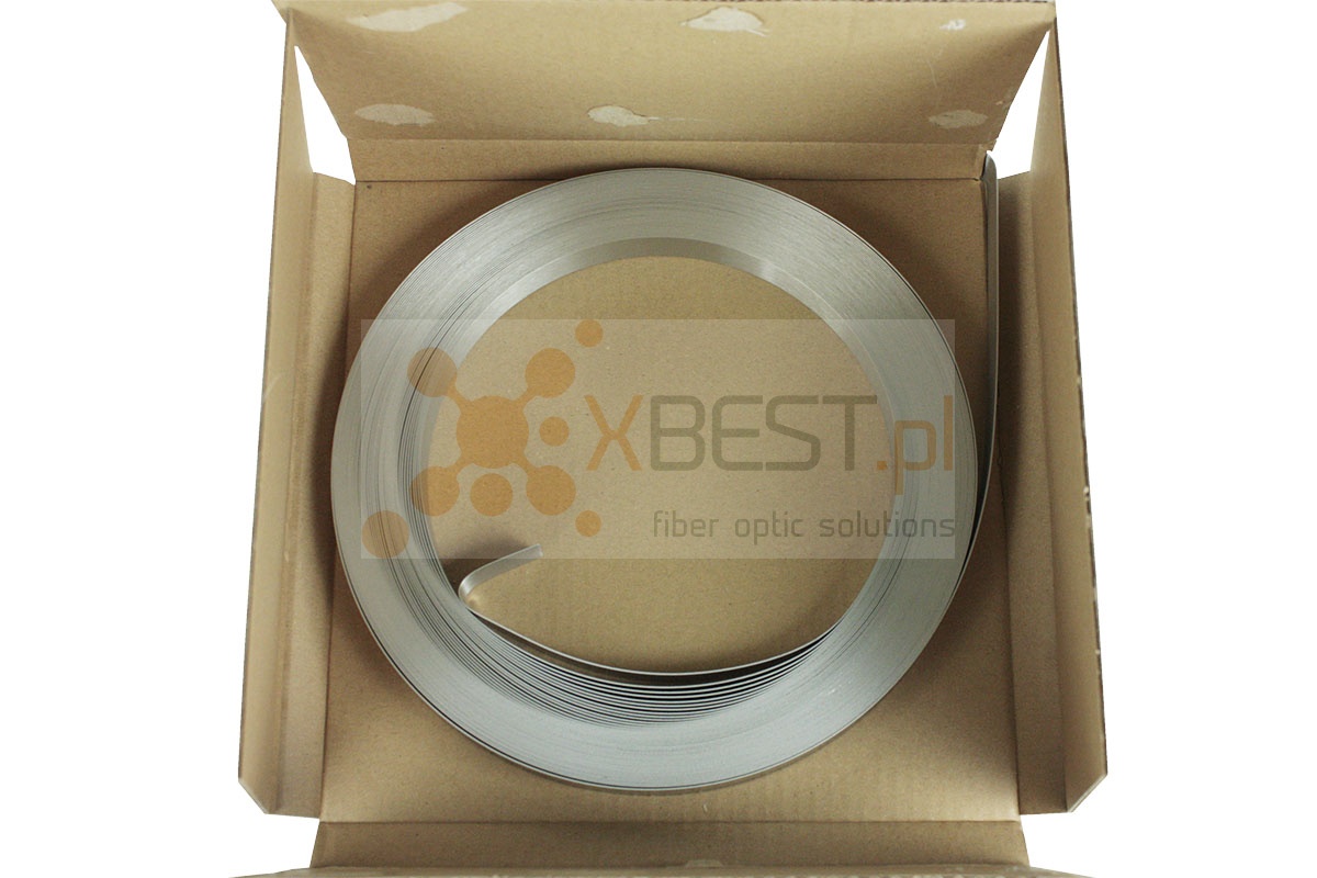 Szerokość taśmy 20mm, grubość taśmy 0.7mm, opakowanie 1 rolka=32mb. Wykonana z odpornej na korozję i warunki atmosferyczne stali nierdzewnej. Waga: 3,65 kg brutto z kartonikiem (3,50 kg netto).