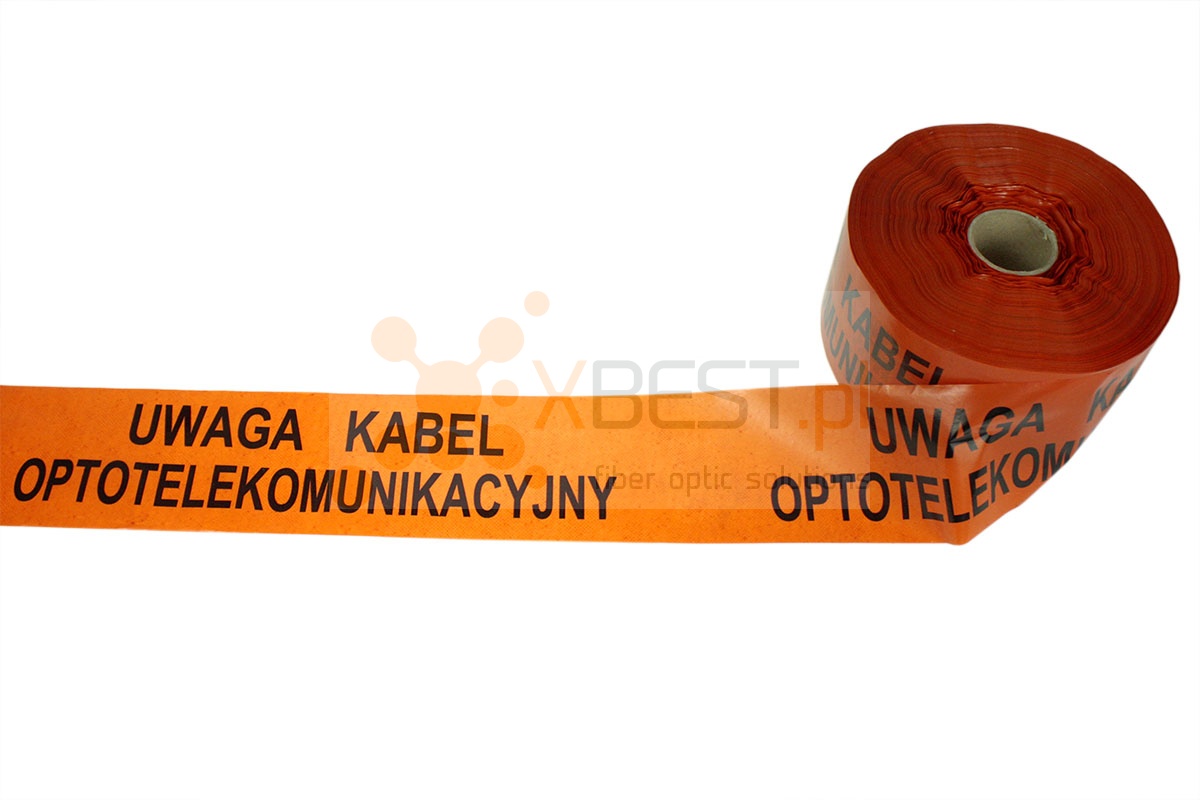 Taśma/folia ostrzegawczo-lokalizacyjna UKO - “Uwaga Kabel Optotelekomunikacyjny” pomarańczowa, szerokość 10cm, długość 500m.